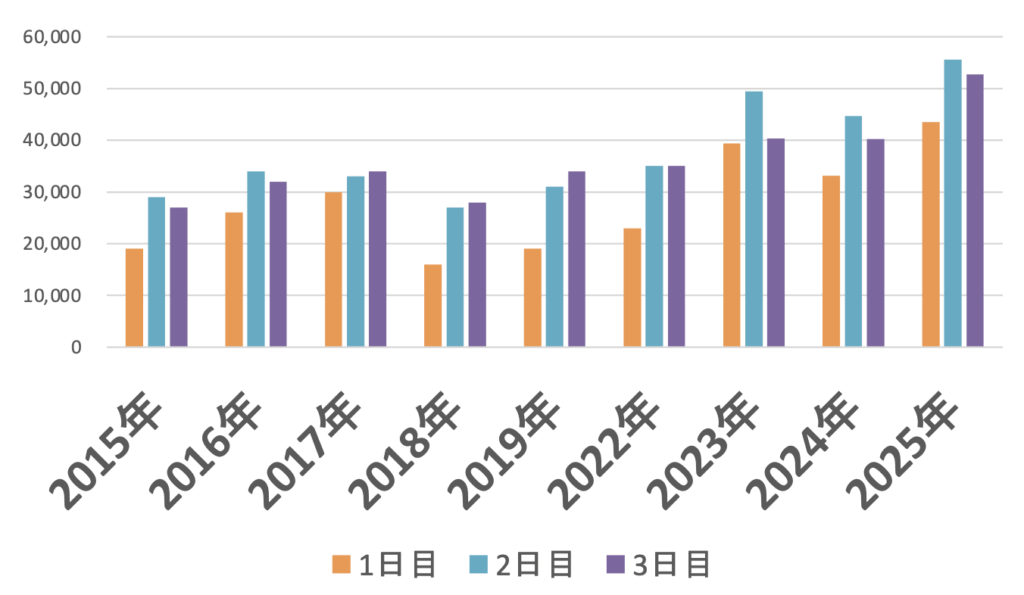 来場者数は過去最高となる15万人を突破。事前登録者数も3.9万人を超え、昨年の約12万人から大きく増えています。