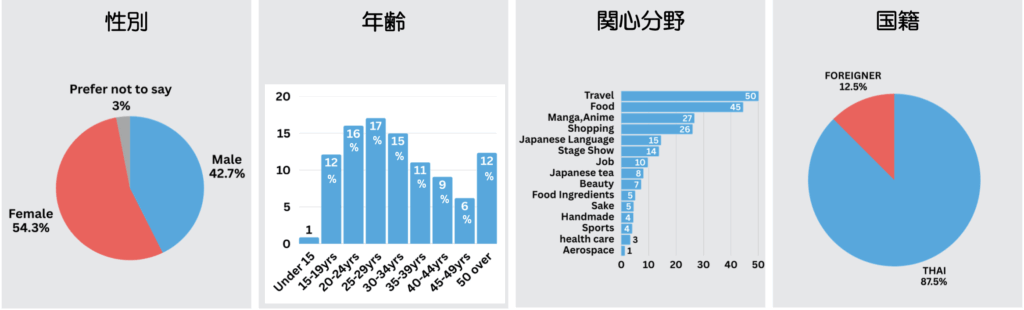 来場者の属性を分析すると、日本の観光・文化に触れたい幅広い層が集まっていることがわかります。